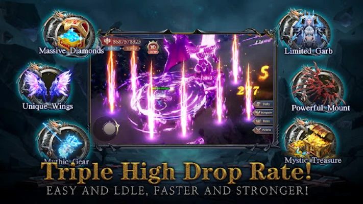 -Multiple cross-server combat, leagues, Abyss Demon King, exquisite costumes, mounts and massive benefits are online! Abyss bosses and top-level costumes are waiting for you to challenge. Collect artifacts to create your own cool image. Master multiple skills to experience the thrill of reaping monsters!