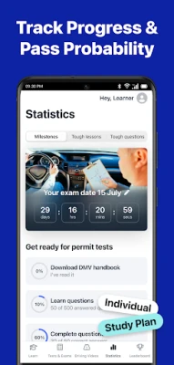 Disclaimer: The application is designed to provide training courses for those learners who prepare for their driver permit tests. This app is not affiliated with and does not represent the DMV or any Department of Motor Vehicles, or any federal, state, county, or city government, or any department, bureau, division, or agency of any governmental body in the United States and it does not replace official state-specific DMV applications.