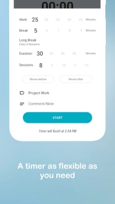 * Flexible Pomodoro Timer: Adjustable sessions and breaks