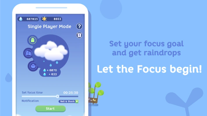 * Stay focused - Collect raindrops when you put down the phone and focus concentration