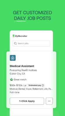 The ZipRecruiter job search app also includes jobs from other employment apps.