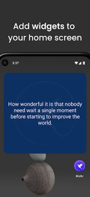 Find your inspiration with Motiv! With Motiv, you will receive motivational quotes to help you find the motivation to be your best self every day. Learn to love yourself and take care of yourself, knowing that you are important and worthy of all the good things life has to offer. Motiv offers thousands of quotes from wise and intelligent people to help you be happy and full of motivation.