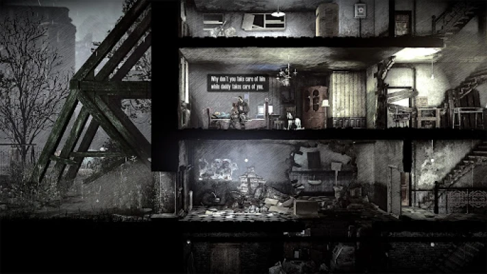 Expand your This War of Mine journey with This War of Mine: Stories Ep 1: Father's Promise. A standalone game that offers a brand new, distinctive experience with additional game mechanics and several hours of thought-provoking gameplay. It tells a story of a family’s struggle to preserve the last pieces of humanity in times of despair and cruelty.